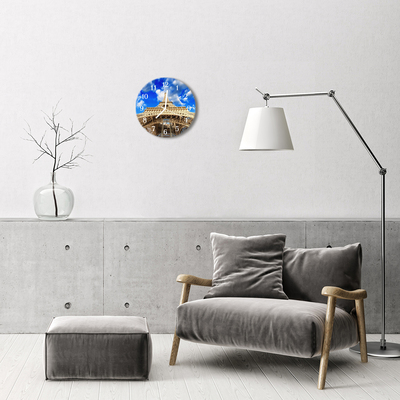 - Ceas de perete din sticla rotund Turnul Eiffel Arhitectura albastru