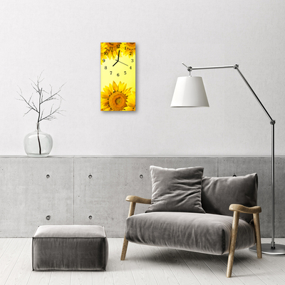 Ceas de perete din sticla vertical Floarea-soarelui flori galbene