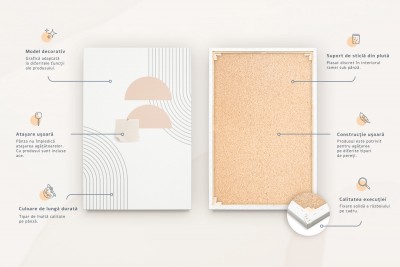 ✓ Material rezistent: Panoul este realizat dintr-un material rezistent de corc, care permite atașarea diferitelor obiecte, note, fotografii și alte documente importante cu ajutorul cuielo