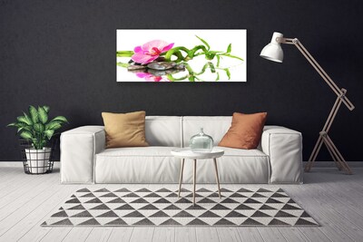 Tablou pe panza canvas Bamboo flori Stones Arta Verde Roz Gri