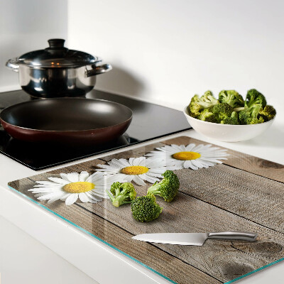 - Tocător de bucătărie Flori pe un fundal de lemn