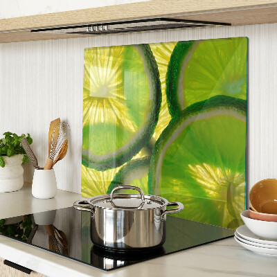- Tocător sticlă Felii de lime pe fundal verde