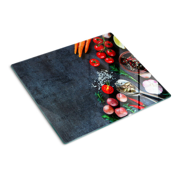 Tocător sticlă Legume și condimente pe un fundal închis de culori diferite este un decor a bucătăriei. Fabricat dintr-un material durabil, reprezintă o comoditate convenabil și extraordinar. Este perfect pentru tăierea, aranjarea și servirea antreurilor într-un mod interesant sau pentru folosirea ca suport pentru vase. Tocător sticlă Legume și condimente pe un fundal închis cu imprimeuri colorate reprezintă o idee bună pentru a diversifica decorul și a facilita munca în bucătărie. Atunci când aranjați bucătăria, merită să vă gândiți să cumpărați acest accesoriu, deoarece Tocător sticlă Legume și condimente pe un fundal închis este o alegere perfectă pentru orice locuință modernă.