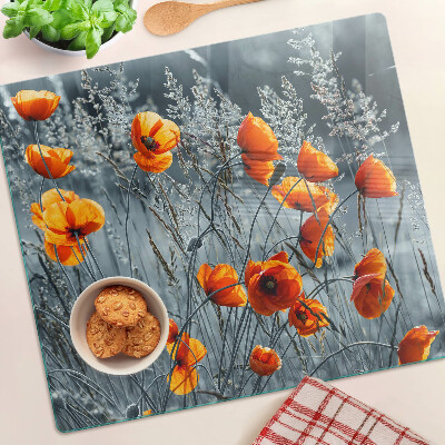 Tocător sticlă Peisaj de maci în nuanțe de gri